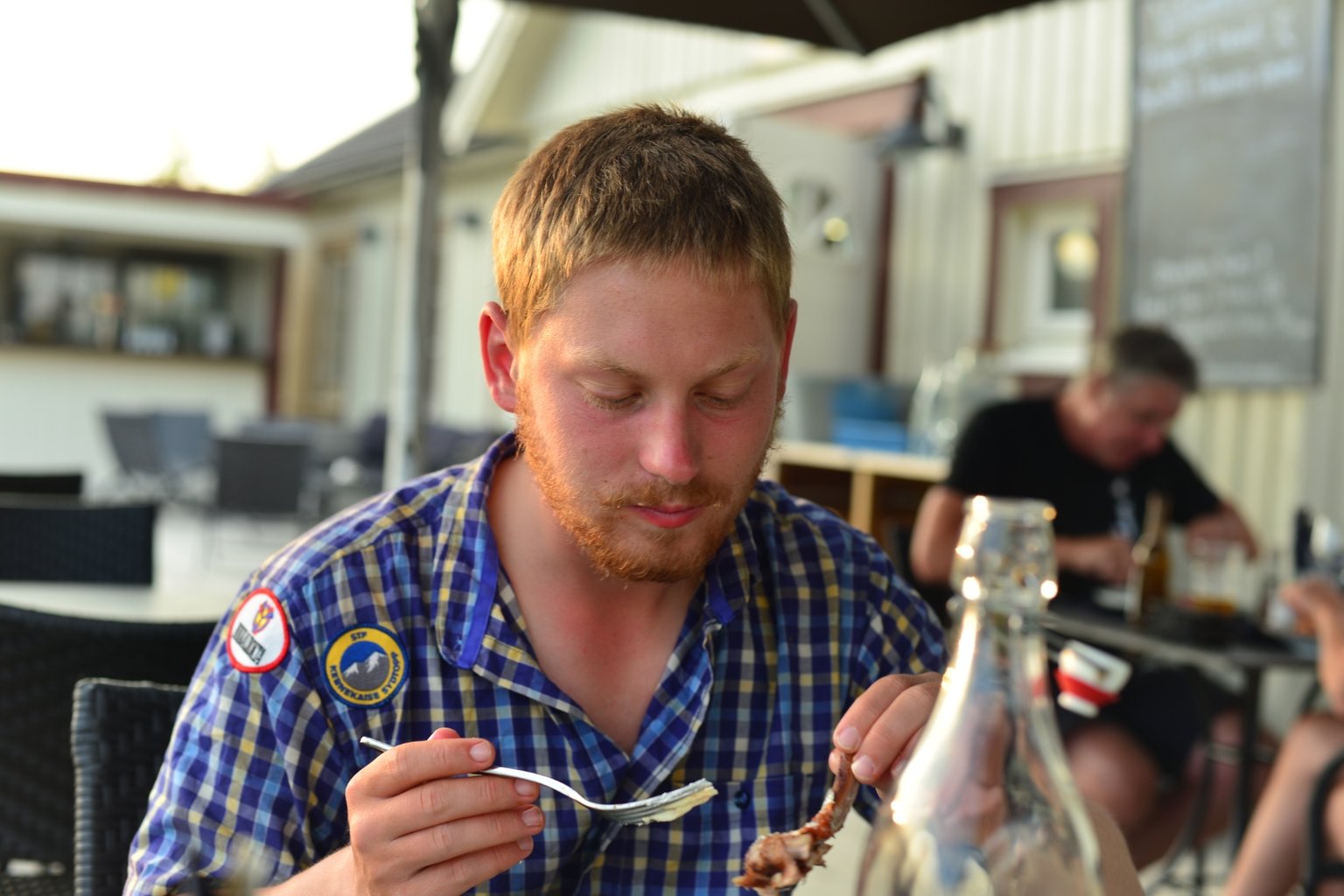 Från Syterstugan borde vi ha kommit iväg fort på morgonen, eftersom vi slapp packa tältet. Men icke. Jocke tycker det är skönt med lugna mornar, och tar gärna en extra kopp kaffe. Samt pratar med andra…