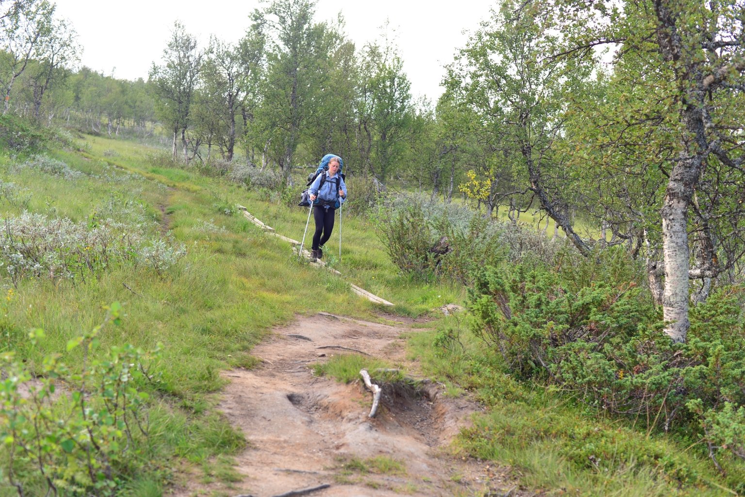 Hur som helst kom vi iväg tillslut. Jocke hade vandrat i området tidigare men utanför leden så han skulle gå i gamla fotspår och lämnade leden för en “genväg”. Karin, som följde leden, kom först och torrast till Syterskalet där vi möttes igen.