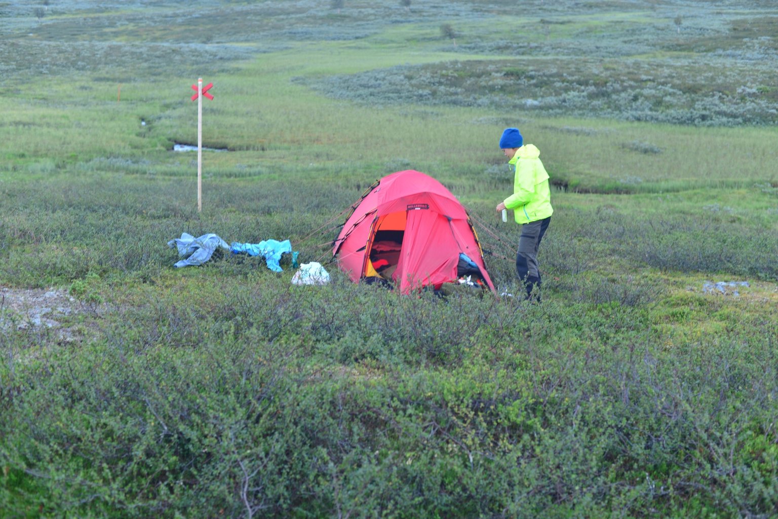 Uppe på fjället blåste det kalla vindar så vi skyndade att göra oss i ordning så vi kunde lägga oss i våra sköna sovsäckar.