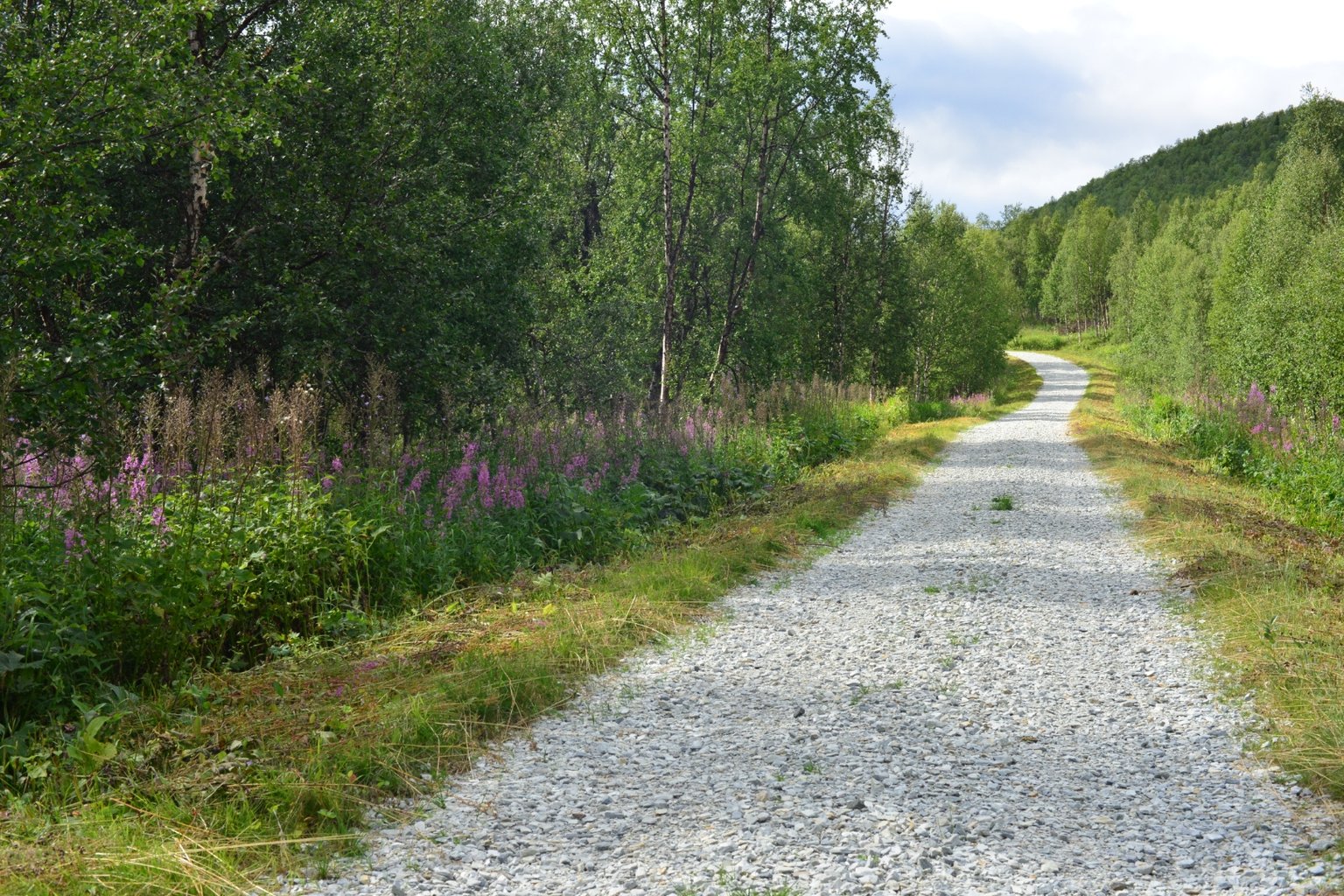 I närheten av Bojtiken kom vi ut på en grusväg och kunde välja att antingen följa leden eller gå på väg på andra sidan sjön.